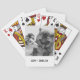 Adicione sua própria foto e texto para criar um presente de foto exclusivo. Este baralho de cartas está pronto para ser personalizado com sua foto e seus próprios nomes ou mensagem em caracteres de estilo de máquina de escrever em preto em apuros. O estilo preto e branco simples e moderno parece excelente com fotos em preto e branco ou coloridas. Mostre uma foto favorita dos seus animais de estimação, uma foto da família ou uma memória de férias.