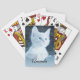 Jogando cartas com uma fotografia adorável de um gatinho branco de cabelos curtos com olhos azuis brilhantes. Estreitando à distância. As patas cruzaram à moda típica de gatinhos.