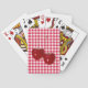Grande motivo de cereja sobreposto à estampa xadrez vermelha.