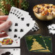 Belo cartões de natal de Natal com uma brilhante árvore de Natal e luzes em fundo verde.