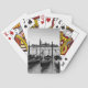 Cartões de jogar na moda com uma fileira de gondolas tradicionais na água com Veneza ao fundo na Itália, a preto e branco.