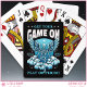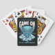 Get your poker game on with these unique playing cards that feature a gothic-style illustration of a skeleton with wings resting on swirling clouds rendered in vibrant blue tones set against a dramatic black background with star accents for a moody aesthetic. Bold typography that says, “Get Your Game On” and “Play or Perish,” creates a dark, edgy vibe. Four customizable placeholders allow you to add your initials, the current year, plus additional text on the top and bottom of the design to create a deck that's uniquely yours or a thoughtful personalized gift. Perfect for poker nights, card collectors, gothic art lovers, or anyone who embraces dark, trendy design, these playing cards combine attitude, artistry, and personalization into one unforgettable deck.
