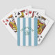 Estas cartas de jogar são perfeitas para os seus encontros ao lago... Listras de cabana azul com crista verde distante do clube do lago. Personalize com os detalhes do seu encontro... ano, lago e destino. Perfeito para uma viagem de lago de família ou amigos, festa de lago ou bachelorette de lago. Acessórios correspondentes disponíveis na Coleção de faixas náuticas azuis do Lake Club.