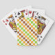 A vibrant checkered pattern of alternating green, orange, and brown squares on a white background. The design creates a lively, geometric feel.