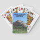 Uma foto de White Rock no Jardim dos Deuses com grama verde, e céu azul. Com uma cerca de madeira. Isso é sobre JOGAR CARDS.