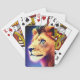 Estas cartas de jogar têm um leão de arte sobre elas.