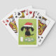 Cute cartoon drawing of a black and tan Dachshund puppy dog wearing a Santa hat sitting in front of a glass of milk and plate of holiday cookies. A humorous Christmas illustration for Wiener Dog lovers. These original playing cards make a great gift!
