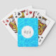 Cartões de jogar com uma fotografia de água azul clara de piscina, com reflexos brilhantes. Um círculo branco colocado sobre o topo com seu nome e dentro inicial monograma.
