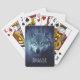 Jogando cartas com a imagem de um lobo mágico místico parado em uma floresta com neve suave caindo por aí. São olhos azuis impressionantes que realmente chamam sua atenção.