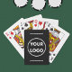 Dê a seus clientes um swag divertido com o logotipo da sua empresa e o site ou slogan para aumentar o alcance do marketing da sua empresa. Seu logotipo aparece em um fundo preto no centro com seu texto em branco acima e abaixo dele. O texto superior está invertido para que possa ser lido quando as placas de jogo estiverem giradas. Substitua o logotipo de exemplo e o texto por seu na barra lateral. Este design funcionará melhor com logotipos que ficam bem em um fundo escuro. Para alterar a cor preta do plano de fundo, "clique para personalizar mais", selecione o plano de fundo e escolha a cor na barra lateral. Em seguida, clique em "concluído" para comprar o item personalizado. Veja mais itens aos quais você pode adicionar seu logotipo na coleção Rocklawn Arts.