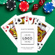 O conjunto de cartões de reprodução personalizado apresenta o seu design de logotipo centrado na frente e enquadrado por texto personalizado que pode ser personalizado com o nome da empresa, localização, slogan, site ou outras informações. As cores de fundo branco e de texto preto podem ser modificadas.