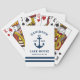 As cartas náuticas de jogar "Lake House" apresentam uma âncora de barco estilo costeiro e faixas de tipografia estilo clássico e design e horizontais. Personalize o texto personalizado com um sobrenome familiar + casa do lago (ou outro título), o ano estabelecido e o local. O esquema de cores branco clássico e azul-marinho pode ser modificado.