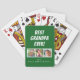 Este baralho divertido de jogar cartas apresenta o texto "Best Grandpa Ever" e oferece três quadros fotográficos para fotos de netos ou avós. O fundo é verde e pode ser alterado para qualquer outra cor escura. O texto personalizado permite personalizar com nomes.