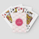 Jogando cartas com um nome personalizado e monograma inicial dentro um círculo vermelho rosado. Projetado com um padrão fofo de gatinhos dormindo por toda a parte, parecendo tranquilo e feliz. Fundo rosa.