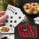 O conjunto personalizado de cartas de jogar apresenta um padrão de xadrez de búfalos vermelho e preto vermelho-brilhante com o monograma inicial da família moderna, personalizado, que pode ser personalizado.