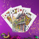 Cute colorful New Orleans playing cards with Mardi Gras theme and colors and custom text.