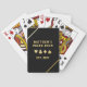 Cartões de Reprodução de Bicicleta Deluxe Personalizados com Traços de Reprodução Dourados em uma linha, pinças de ouro na diagonal no canto e espaço de redação personalizado para criar um nome para a sua "sala de pôquer", sala de jogos ou caverna de homem. O texto pode ser mudado para funcionar com qualquer jogo de cartas favorito - ponte, euchre, blackjack, corações, solitário, rummy ... absolutamente qualquer jogo favorito pode ter o nome impresso na frente.