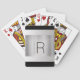 Personalize com seu Monograma e Nome em metal prateado escovado para um olhar contemporâneo e dinâmico em preto e cinza. Um estilo simples e moderno com fundo preto que vestirá perfeitamente suas cartas de jogar. Faz um presente de excelente.