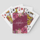 Bordas de rosa de aquarela roxa e rosa feminina com um nome de caligrafia roxa de script modelo. Ao fundo há um modelo de monograma ousado. Um elegante baralho de jogar com um toque pessoal. O nome e as fontes do monograma podem ser alterados ainda mais clicando no botão personalizar e, em seguida, clique em personalizar mais.