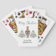 Estes cartões de jogo personalizados apresentam um tema de Natal escandinavo em um fundo branco comum. Uma imagem de um preguiçoso impressa entre duas árvores de Natal estilo escandinavo é impressa no centro. Uma saudação de "Feliz Natal" é impressa acima do pregador em uma fonte elegante. Um nome de família de exemplo é impresso abaixo da imagem que você pode personalizar para incluir seu próprio nome personalizado ou texto.