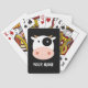 O miúdo está a jogar cartas com um desenho de vaca fofo. Personalizado com seu nome ou citação. Design de touro engraçado com chifres.