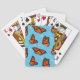 Este baralho de borboletas de Monarca tem o tema das cartas de jogar com as imagens de três borboletas monarcas diferentes padronizadas sobre contornos de flores de rabisco em um fundo azul personalizável - por katz_d_zynes