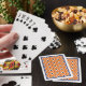 Jogue cartas com seus amigos com este baralho de cartas clássicas cobertas neste lindo padrão japonês de laranja e flor branca. Katazome é um método de impressão japonês onde se aplica uma pasta resistente em um tecido por meio de estêncils. As partes não cobertas pelo passado podem ser tingidas. Você repete o processo para a próxima cor. Dessa forma você constrói uma ilustração ou um padrão em série. É utilizado, por exemplo, no tecido de um quimono ou pode-se azulejo um padrão de algodão. Os japoneses ainda vestem com frequência roupas tradicionais nas quais os padrões tradicionais são impressos. Por exemplo, yukatas ou jinbis. O estilo também é usado para impressões de padrões no papel. Acho que se chama Katazome shi.