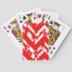 Um padrão repetitivo de ziguezags vermelho e branco. As linhas que formam os ziguezags não são perfeitamente sólidas; há pequenos buracos irregulares e formas fragmentadas dentro das áreas vermelha e branca, dando a ela uma aparência um pouco angustiada ou abstrato.