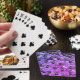 Um padrão de estampas pretas adornam este baralho de cartas. Estas placas apresentam um fundo de abstrato azul e roxo. Pequenas impressões de pata preta aparecem nas placas.
