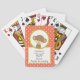 Chá de fraldas jogando cartas. Projetado com um macaco bebê bonito segurando um pacificador em sua boca dentro um círculo com uma borda verde-oliva. O fundo é um padrão de bolinhas laranja e branca. As letras na palavra bebê estão penduradas em uma seta de estilo boho. O texto diz obrigado e está pronto para ser personalizado com o nome de seu convidado de honra.