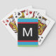 As cartas de jogar impressão grandes são as cartas de jogar perfeitas para quem tem problemas de visão. Este baralho de cartas apresenta faixas verdes, azuis, vermelhas e pretas na parte de trás de cada cartão, com um monograma em branco. Trata-se simplesmente do melhor tipo de cartões para alguém com problemas de visão e que lhes permite continuar a usufruir de um bom jogo de cartas. Copyright Kathy Henis