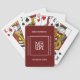 Design moderno e elegante para um baralho de cartas de jogar... com modelos para nome, iniciais e texto especial... impressos sobre fundo vermelho escuro.