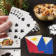 Philippines flag playing cards, national emblem game deck, patriotic Filipino design, durable everyday card set, symbolic sun and stars motif, stylish and practical card accessory, vibrant and long lasting flag print, heritage inspired gaming item, expressive island nation identity deck, premium quality artistic design cards, meaningful and elegant national motif, distinctive culturally themed playing cards, traditional emblem inspired decoration, reliable and stylish game accessory, bright and bold Philippines design, practical and expressive national pride set, modern and symbolic themed deck, unique pride inspired game item, artistic and functional card collection, elegant and expressive regional design