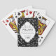 Esta é uma maneira maravilhosa de comemorar o casamento ou o aniversário do casal feliz! O casal que os jogos junto, permanecem junto! Cartões de jogo personalizados em um teste padrão floral florido preto e branco corajoso bonito e moderno, com um Tag extravagante da etiqueta que possa ser costume criado com a data do sobrenome e do casamento. Estes cartões feitos sob encomenda fariam um presente de casamento maravilhoso para qualquer um que gosta de jogar junto jogos de cartas, dão como um presente de casamento ao casal do newlywed, ou para um aniversário do marco miliário! O presente perfeito para a pessoa que tem tudo, ou para os jogadores de cartão dedicados na família.