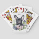 Cãozinho francês preto personalizado jogando cartas com um design floral no estilo aquarela. Apresentando flores roxas, azuis e rosa e um filhote adorável. Jogos para amantes de estimação.