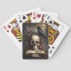 Um corvo percorre um crânio colocado num livro aberto e rodeado por flores neste baralho de cartas temático gótico. Belo design, um pouco macabro, perfeito para quem caminha do lado mais escuro.