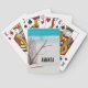 Jogando cartas com uma bela fotografia. Água azul tropical e surf de espuma no fundo. Uma coleção de conchas e caules em uma praia branca de areia.