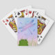 Um sapo fofo com olhos grandes está espreitando através da grama alta e esperta em um campo neste lindo baralho de cartas de jogar. Bonito libélulas de tamanho variado voam sobre a cabeça do sapo contra um céu azul / rosa, e seu nome pode ser personalizado sobre uma libélula rosa e azul maior - por katz_d_zynes