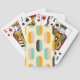 A seamless geometric pattern features vertical, oval shapes in soft yellow, teal, peach, orange, and brown, creating a retro, playful vibe.