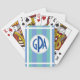 Baralho Seu monograma em azul listrado, turquesa e branco