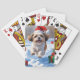 Baralho Shih Tzu correndo em neve com chapéu de Natal