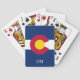 Essas cartas de jogar apresentam a bandeira corajosa e distinta do estado do Colorado, com as extensas faixas azul e branca e a letra vermelha C com o sol dourado no centro. Seu monograma de duas letras está em branco no fundo. Se você é do Colorado, ou apenas ama o belo estado, você vai gostar deste design de cartão!