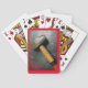 Um martelo usado para uma mão bem jogada com este baralho de cartas. É um design masculino para seu pai, avô, irmão, marido ou homem de mão. Este convés é um dos dois designs coordenadores com ferramentas manuais e cada um pode ser personalizado com iniciais ou um nome. As cartas de jogar têm uma borda vermelha que combina a cor do texto com uma angustiada bancada de trabalho preto. Esta imagem é uma fotografia original de JLW_PHOTOGRAPHY