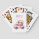 Jogando cartas com uma ilustração caprichosa. Uma preguiça rosa dirigindo em um conversível rosa. Adorável.