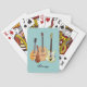Se você é músico, ou alguém que ama música em geral, então este baralho de cartas tocando com quatro instrumentos de cordas contra um fundo azul macio é para você! Tem a palavra "Cordas" em uma fonte elegante sob os instrumentos, e isso você pode personalizar.