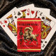Elevate your 2027 lunar new year entertainment and dining experiences with these celebratory playing cards, which feature the Fire Goat dancing on a luxurious faux red silk background bordered by faux gold foil, plus the Chinese letterform for the Goat/Sheep/Ram rendered in faux gold foil, standing in place of the zero in 2027.