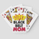 Encoste esta Super Black Belt Mãe jogando cartas enquanto espera pela sua aula de artes marciais. É uma bela ideia de Dia de as mães, aniversário ou presente de Natal. Um texto grande design com cores vermelhas e amarelas dominando-o.