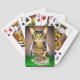 Jogando cartas num retrato de uma mesa marrom e bronca jogando cartas de gato - e ganhando