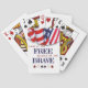 Este design apresenta um revestimento vermelho, branco e azul no topo e estrelas no fundo com a mensagem "Terra dos LIVRES por causa do BRAVE" na parte de trás das cartas de jogar. Prepare-se para os jogos de cartas nas comemorações do dia da Independência, eventos patrióticos ou qualquer ocasião.