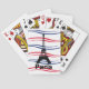 Ilustração da Torre Eiffel sobre fundo ondulado azul, branco e vermelho